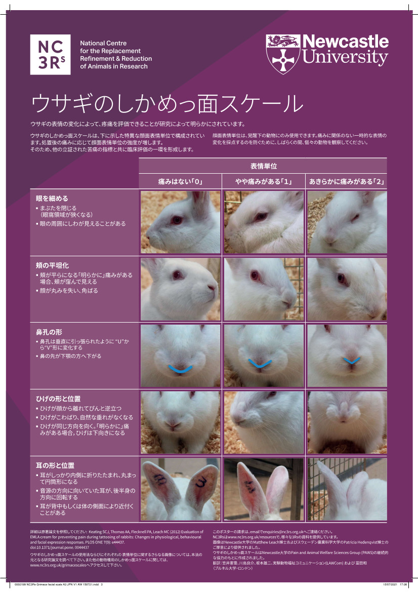 実験動物の福祉に貢献するグリマス・スケール(しかめっ面スケール)の日本語版ポスターの制作を目的に有効活用させていただきます。